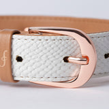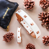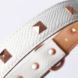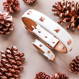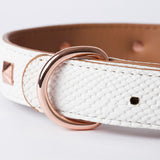 7This textured FriendshipCollar features a white embossed faux snake print. Our vegan leather is 100% cruelty free. This studded design needs a little more TLC. So if it gets dirty we suggest that you dab it with a wet cloth and pat it dry. We also suggest you take your bracelet off when you shower or swim.